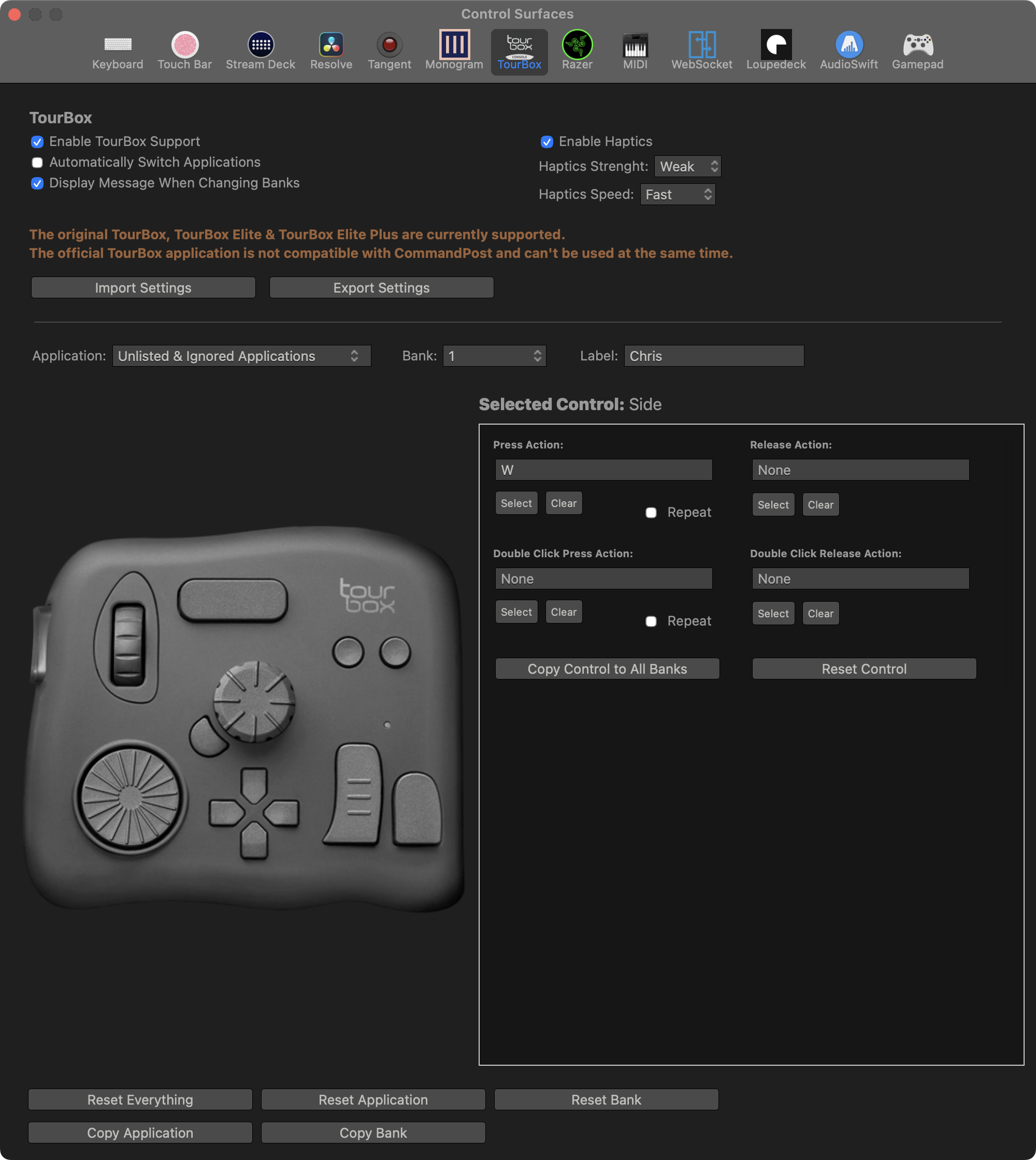 CommandPost has support for the original TourBox, TourBox Elite and TourBox Elite Plus.